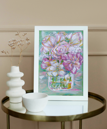 This painting needs a frame and can be framed with or without glass.